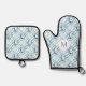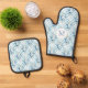 Personalized Blue Floral Stripe Country Kitchen Oven Mitt & Pot Holder Set