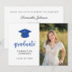 Celebrate your graduate with this modern graduation announcement and party invitation featuring a customizable senior photo, graduation cap icon, and clean elegant typography. This timeless design is perfect for high school or college graduates and can be personalized with the graduate’s name, class year, school, and event details.