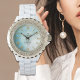 Personalized Blue Marble Women’s Rhinestone Watch – Elegant Couple’s Wedding or Anniversary Gift.