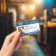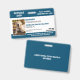 Professional Horizontal service dog ID badge in Blue and white with room for a photo of the service dog . Add name, title, and registration number. Add the handler's name and contact information too.