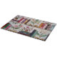 Elegant cutting board featuring a beautiful stained glass style bookshelf with colorful books and delicate floral accents. Personalize it with your name to create a unique and meaningful gift.