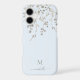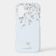 A modern monogram design featuring an elegant botanical watercolor. Script typography for your name and serif typography for your monogram on a blue background. The monogram and name can be easily personalized.