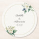 Personalized Botanical White Floral Wedding Round Paper Coaster