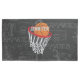 Personalized basketball and hoop design on a dark and light gray chalkboard design background with a pattern of basketball terms. Just customize the name to add the name of the basketball fan, basketball player or basketball coach. Ideal for netball players too!