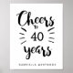 A modern Cheers to 40 years poster sign, which you can easily personalize with his or her name. Great for a 40th birthday party, retirement party, etc.