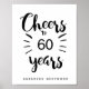 A modern Cheers to 60 years poster sign, which you can easily personalize with his or her name. Great for a 60th birthday party.