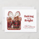 Capture the joy of the holiday season with this charming Christmas card. Featuring a delightful gift box cutout to showcase your favorite family photo, this card is perfect for sending warm wishes to loved ones. The bold red text proclaims "Baking Things Bright," adding a festive and playful touch. Below, a classic "Merry Christmas" script is accompanied by your family's name, making it a truly personal greeting. The clean white background and elegant red accents create a sophisticated yet heartwarming design, ideal for sharing your holiday cheer and creating lasting memories.