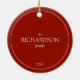 Celebrate the season in timeless style with this elegant holly family Christmas ornament, a beautifully crafted keepsake that brings festive artistry and personal meaning to your holiday décor. The front features a stunning 3D-look design of lush holly leaves and vibrant red berries. The back offers a customizable touch, allowing you to personalize it with your family name and year - creating a treasured heirloom for years to come. With its classic color palette of rich greens, reds, and warm golds, this ornament blends tradition with a touch of luxury, making it a standout piece on any Christmas tree.