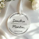 Personalized Circle Stamp with your names and date. Edit your product in minutes by typing your text. You can customize the font/position by clicking on "Personalize more".