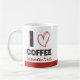 This personalized coffee mug features the phrase “I ♥ Coffee” with bold lettering filled with a stylish coffee bean pattern. Add a custom name to create a unique mug that celebrates your love for coffee.