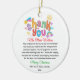 Featuring a bright, playful “Thank You” illustration and space for a fully customized message, this ornament turns your child’s appreciation into a keepsake the teacher will treasure every Christmas.
