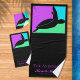 Bring vibrant tropical flair to your life with this striking black sea turtle silhouette, set against a bold geometric background of purple, turquoise, and mint green.