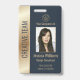 Easily personalize this professional luxury style gold and blue employee photo ID badge with your custom details.