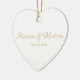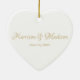 Personalized Custom Couple Name and Date Wedding Heart Ceramic Ornament.