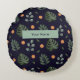 Personalized Custom Name Navy Botanical Round Cushion