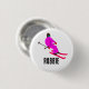 Personalized Custom Name Retro Pink Skier Girl 3 Cm Round Badge