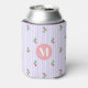 Personalized Cute Striped Holiday Christmas Holly Can Cooler