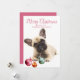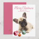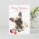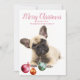An adorable French bulldog puppy with Christmas ornaments at his feet, personalized holiday greeting card. Contemporary modern style greeting for the holidays, and dog lovers! Replace the photo with your dog's photo. Be sure to catch his or her personality! Save one as a greeting card memento to look back on each year.