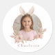 Add a personal touch to Easter gifts and celebrations with these personalized Easter bunny photo stickers. Featuring a soft pastel floral wreath design and space for a custom child photo and name, these stickers are both adorable and meaningful.