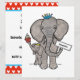 A sweet illustration of an elephant and baby. The baby is holding up a cupcake covered in sprinkles and they are both wearing crowns.