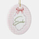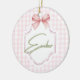 Personalized Ember Baby Girl Nursery Bow&Gingham Ceramic Ornament