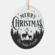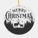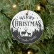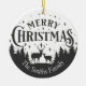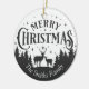 Celebrate togetherness with this personalized family Christmas ornament featuring a rustic black-and-white design. A pair of reindeer stand gracefully against a pine forest backdrop beneath the festive “Merry Christmas” greeting. Add your family name to create a timeless keepsake that will bring warmth and tradition to your holiday tree year after year.