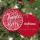 Easily personalize this beautiful hand lettering "Jingle bells" design Christmas ornament with your custom family name on the back.