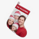 "Celebrate family and holiday memories with this Personalized Family Photo Christmas Stocking. Featuring a custom family photo and personalized names or surname it creates a heartfelt, one-of-a-kind keepsake for your mantel. Perfect for showcasing your loved ones and adding a personal touch to holiday décor, this stocking combines festive charm with sentimental value. Ideal for family traditions, it makes a thoughtful gift that will be cherished for years to come."