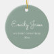 Celebrate your baby's first Christmas with this charming personalized ceramic ornament. The name side features a soft sage green background with cute script writing, while the other side showcases a cherished photo. This adorable ornament is a perfect keepsake to commemorate this special milestone, adding a sweet and personal touch to your holiday decor. A delightful addition to your tree or a thoughtful gift for new parents!