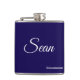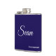 Personalized flask with name and title is a great gift for your wedding, for your engagement or for your bachelor party. The colors is Navy Blue and the text could be replaced with your own name and title.