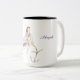 Pretty Flower Fairy Mug- Personalize for an extra special gift. Original artwork of a fairy perched on a sprig of lavender is by fae artist and author Elizabeth Andrews.
