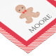 Brighten up your table this holiday season with this gingerbread man table runner edged with a candy cane striped design. Personalize this runner with your family name.