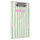 Personalized Girly Coquette Green Stripe Bow Clipboard