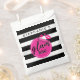 Add your favorite goodies to this chic personalized signature black-and-white stripe favor bag for guests or friends. Perfect for birthdays, bridal showers or girl's night out.