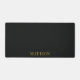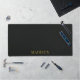 Personalized solid black desk mat with your name in a simple serif gold typeface. Simple minimalist modern typography. Perfect for home or office workplace.