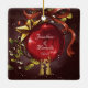 This charming Christmas holiday ornament features a golden bunny couple in love under the mistletoe. They are sitting among a warm and magical arrangement of ornaments, ribbons and mistletoe. The back can be personalized with names, a year or any text that you wish to add. -