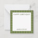 Personalized stationery enclosure notecard with a green gingham pattern in notes of deep forest sage olive garden green with the sentimental words "HAPPY BIRTHDAY". Tuck it into a flower bouquet or meaningful gift. These minimal flower shop inspired enclosure cards bring a retro kitchen vibe to your most thoughtful moments.