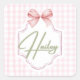 Personalized Hailey Baby Girl Nursery Bow&Gingham Square Sticker