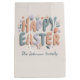 Make Easter gifting extra special with this personalized Happy Easter gift bag, featuring soft pastel lettering and charming spring details. Customized with your family name, this reusable gift bag is perfect for Easter baskets, treats, party favors, and small gifts for kids and loved ones. A cheerful and practical way to present Easter surprises while keeping your holiday style coordinated and festive.