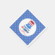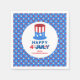 Custom paper napkin featuring a patriotic star background along with the text "Happy Fourth of July" Add your family name to the napkin to personalize it.