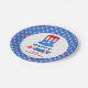 Custom paper plates featuring a patriotic star background along with the text "Happy Fourth of July" Add your family name to the plate to personalize it.