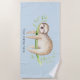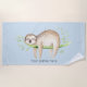 Watercolor design; smiling sloth on tree branch, light blue background. Personalize with name or other special message