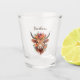 Cute personalized shot glass featuring a floral highland cow design with custom name. Perfect as a unique gift, keepsake or fun bar accessory for cow lovers.