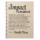 Celebrate those who spark positive change with this Impact Creator definition notebook. Thoughtfully designed for people who inspire growth, build connection, and make a difference through everyday actions. A meaningful personalized gift for teachers, leaders, coworkers, or anyone who brings light and purpose to what they do. Perfect for journaling ideas, reflections, or future goals that continue to create impact.