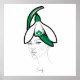 The design features a minimalist line-art face crowned with graceful snowdrop flowers—the birth flower of January representing hope, purity, and new beginnings. The flowing one-line illustration style creates modern elegance, while the pristine white petals and fresh green leaves capture winter's quiet beauty.