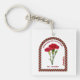 Carry the beauty and symbolism of your birth month wherever you go with this January Birth Flower Keychain, featuring the elegant Carnation—a flower representing Love & Hope. Designed to match our Birth Flower Mug and Tote Collection, this keyring showcases a vibrant carnation illustration framed in a charming checkered arch with customizable text.