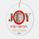 Create an unique and heartfelt holiday greeting with this personalized Christmas photo Ceramic Ornament featuring a festive “JOY” design and a customizable photo in the center.