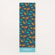 Treat your littlest yogi to this cute dino themed yoga mat, featuring a pattern of T Rex, brontosaurus, and more on a navy blue background. Personalize with a name or initials along the bottom.