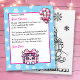 Add your child's name to this personalized letter from Santa. Cute pink and white Christmas gift and candy canes in a Kawaii style. The back has an adorable penguin sledding down a hill coloring page!