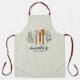 Personalized kitchen utensils apron designed for durability, style, and comfort. This cooking gift for anyone features styled green leaves, whisk, spoon, and baking rolling pin. All elements can be personalized with your own text, name, etc., including the pale eggshell background color of the apron can be changed to whatever color you prefer or remove it entirely.
